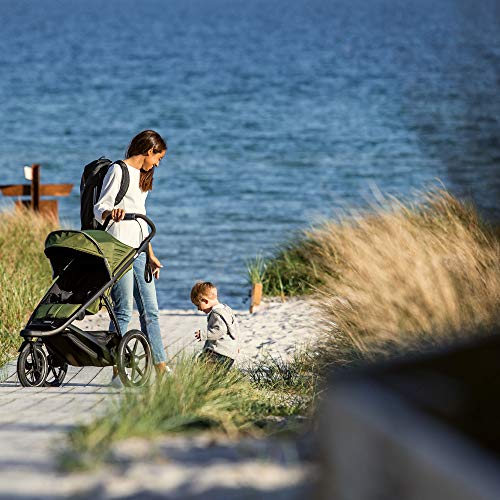 Since the parking brake is on the handle, the foot area can remain clean and empty. It has a 4-position padded handle for easy control and a standing fold for quick storage. The Chicco activ3 has excellent functionality. When it comes to the most comfortable snow stroller, this product is second to none.